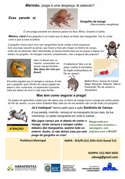 O gorgulho da manga é um inseto que ataca os frutos das mangueira ainda bem pequenas. Dos ovos nascem as larvas que furam a fruta até chegar no interior do caroço, onde vão se alimentar. Bem alimentadas as larvas transformam-se em pupas e depois em adultos do gorgulho. As mangas crescem e amadurecem, mas as pragas acarretam prejuízos.