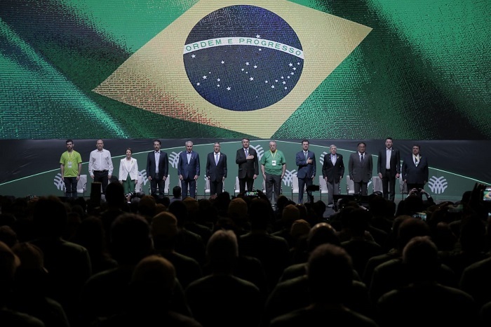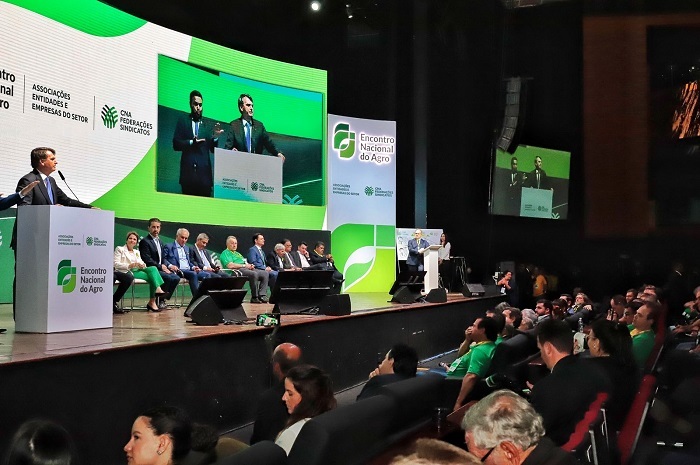 João Martins discursou na abertura do Encontro Nacional do Agro, na presença de 3,5 mil lideranças rurais de todo o país, do presidente da República, Jair Bolsonaro, ministros e autoridades