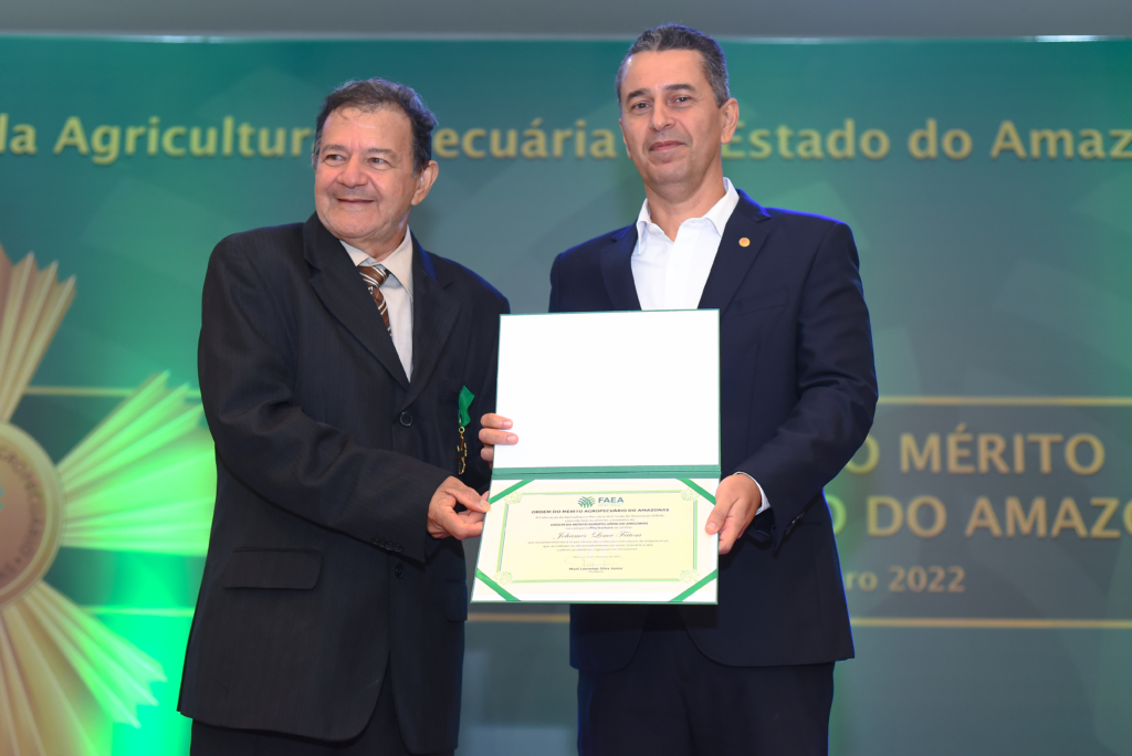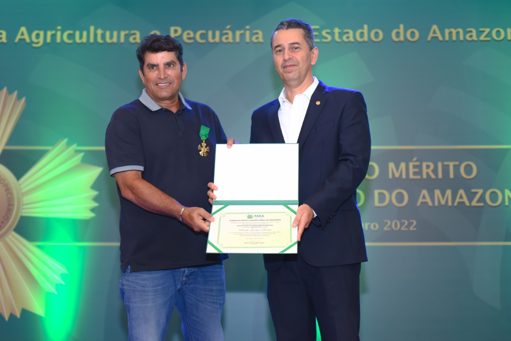 A Federação da Agricultura e Pecuária do Estado do Amazonas (FAEA) realizou na noite da última terça-feira (13), no Palácio Rio Negro, a cerimônia de outorga da Ordem do Mérito Agropecuário, concedendo medalhas a empresários do setor primário amazonense. A homenagem ocorreu após período pandêmico, como forma de retomar a tradição de prestigiar aqueles produtores, empresários e instituições que por seu relevante trabalho contribuem com o desenvolvimento do agro no Estado.