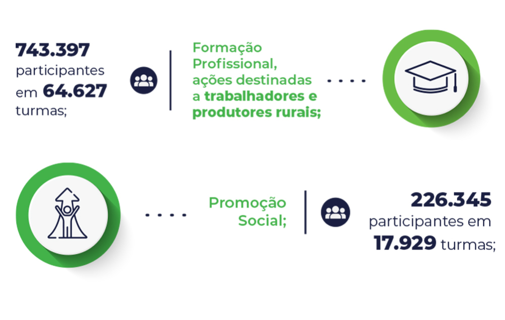 SENAR · 18 NOV 2025O Serviço Nacional de Aprendizagem Rural - Senar proporciona mudança de atitude do produtor e do trabalhador rural, que se desdobram para garantir alimento de boa qualidade aos brasileiros. Desperta a população do campo com oferta de ações de Formação Profissional Rural, Atividades de Promoção Social, Ensino Técnico de Nível Médio, presencial e a distância, e com um modelo inovador de Assistência Técnica e Gerencial.