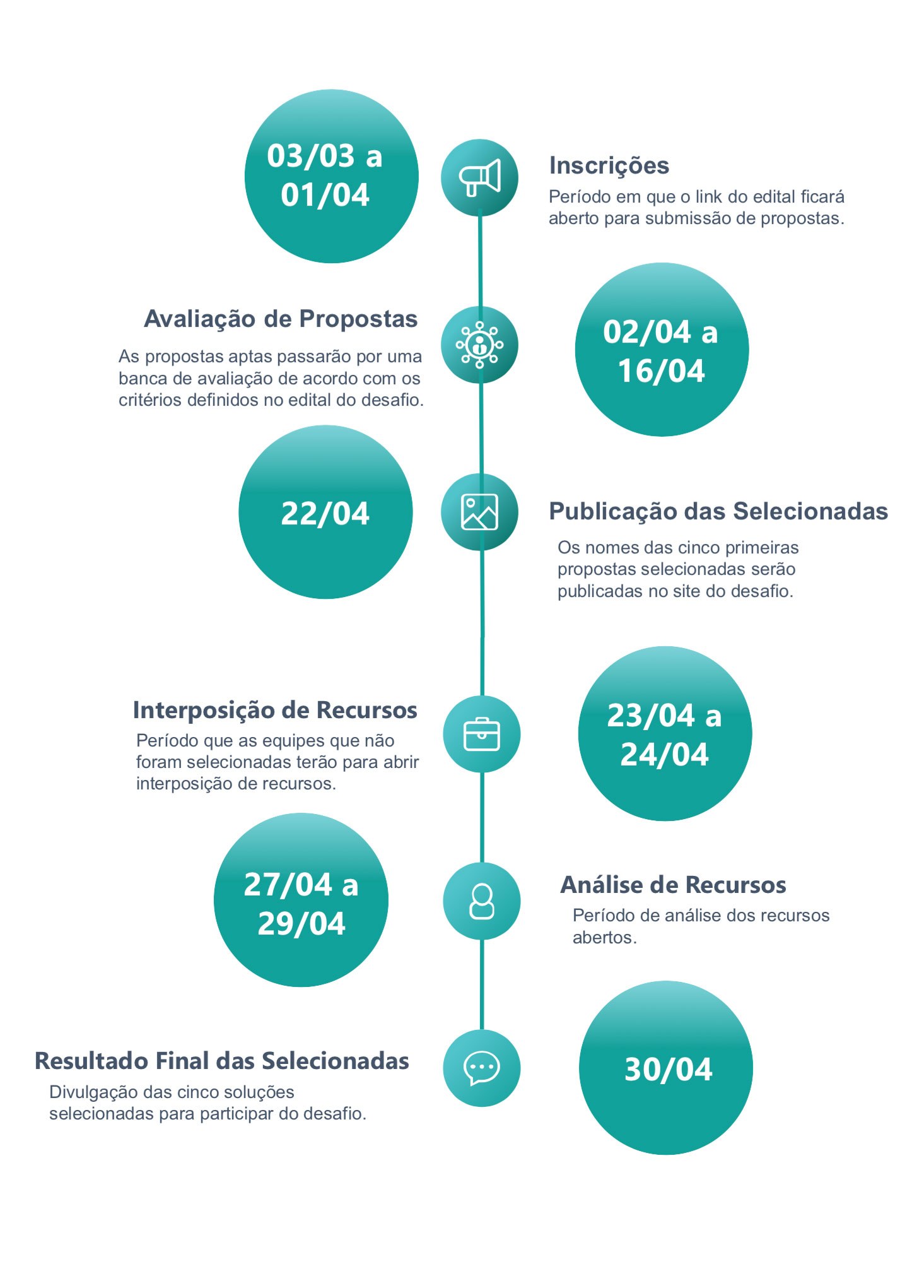 O prazo de inscrição se encerra no dia 01 de abril de 2020, conforme disponível no edital do Desafio.