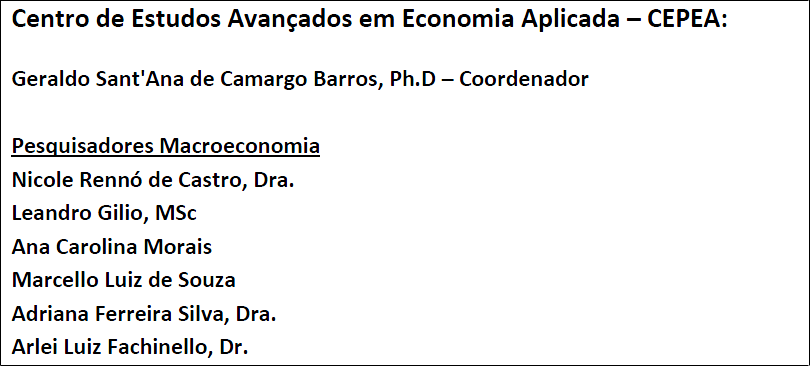 Importante também destacar que cada relatório considera os dados disponíveis – preços observados e estimativas anuais de produção – até o seu fechamento. Em edições futuras, ao serem agregadas informações mais atualizadas, há a possibilidade, portanto, de ocorrer alteração dos resultados, tanto no que se refere ao mês corrente, como também ao que se refere a meses e anos passados. Recomenda-se, portanto, sempre o uso do relatório mais atualizado. Para uma análise mais detalhada dos aspectos metodológicos, bem como dos resultados dos demais indicadores (PIB volume, Consumo Intermediário, etc.) ver http://www.cepea.esalq.usp.br/...