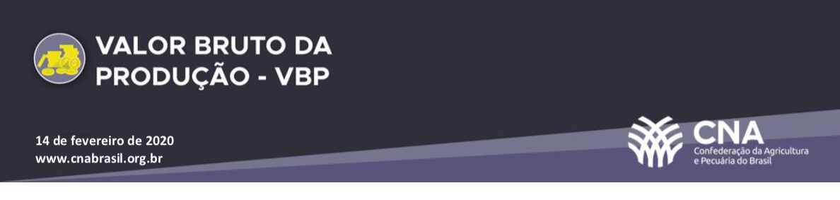 Dados de janeiro de 2020 revelam expectativa de crescimento de 9,9% no Valor Bruto da Produção agropecuária no ano. Para o ramo agrícola, é esperado um crescimento de 10,7%, um incremento de R$ 42,2 bilhões frente a 2019. Para o ramo pecuário o VBP de 2020 deve ter um incremento de 8,7%, o equivalente a um montante de R$ 21,2 bilhões.