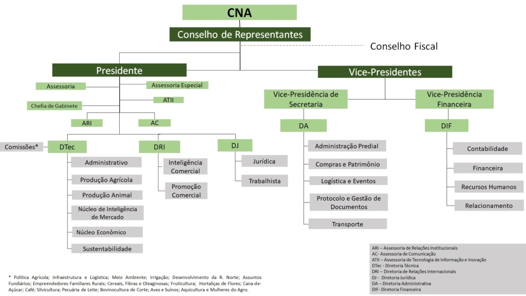 Também compõem o Sistema CNA, o Serviço Nacional de Aprendizagem Rural (SENAR) e o Instituto CNA.