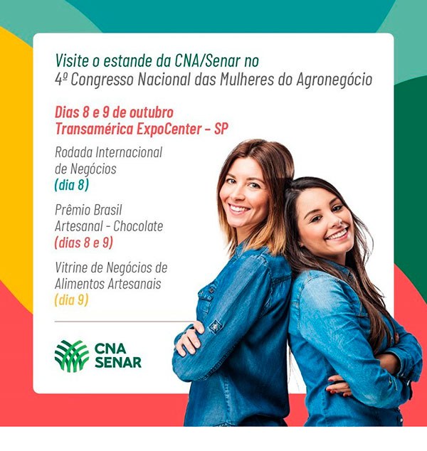 - Prêmio Brasil Artesanal de Chocolate – Uma ideia e uma mochila cheia de cacau- Sistema CNA/Senar participa do Congresso das Mulheres do Agro- Prêmio Brasil Artesanal de Chocolate – Do Canadá a Ilhéus