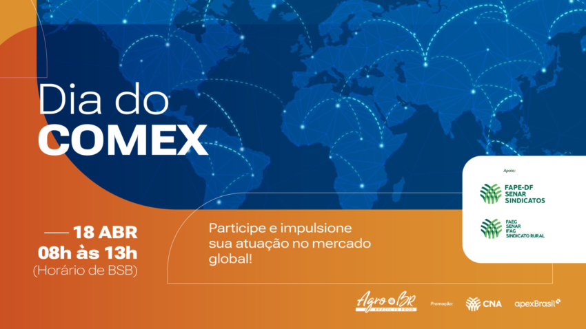 Pensando nisso, no próximo dia 18 de abril realizaremos nosso primeiro Dia do Comex, um evento voltado para mostrar a produtores rurais, agroindústrias, associações e cooperativas agrícolas como o seu produto pode chegar mais longe e atingir outros países independente de ser um pequeno ou grande produtor. Venha aprender com especialistas da área como chegar lá.