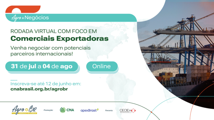 O AgroBr convida seus participantes para mais uma rodada de negócios virtual. Desta vez, com foco em empresas na Fase de Conhecimento do Projeto e comerciais exportadoras.