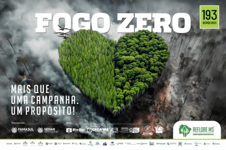 Com o tema “Mais que uma campanha. Um propósito”, foi lançada nesta terça-feira (06) a 13ª edição da campanha Fogo Zero. A iniciativa promovida pela Reflore/MS e Sistema Famasul, com apoio do Governo do Estado, Corpo de Bombeiros Militar e Ibama/MS, tem como foco a prevenção e o combate aos incêndios florestais, com ações integradas e contínuas voltadas à conscientização e à preservação ambiental.