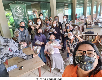 Desde o segundo semestre de 2018, Suzana ministra três diferentes cursos pelo SENAR-SP. “Muita gente me procurava para saber como funciona o negócio e assim acabei me tornando instrutora”, explica. Hoje, as ações do SENAR-SP nesta área são compostas pelos seguintes cursos: Shiitake - Produção e Colheita; Shimeji - Produção e Colheita; e Agaricus - Produção e Colheita (que inclui champignon e cogumelo do sol). Para ter uma ideia da alta procura pelos cursos, apenas nos três meses iniciais foram atendidos cerca de mil alunos. Além de viajar pelo Estado para lecionar, Suzana presta consultorias nesta área, visitando diversos locais em todo o Brasil para realizar seu trabalho.