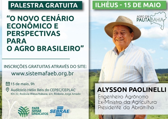 “O Novo Cenário Econômico e Perspectiva para o Agro Brasileiro” será o tema da próxima palestra do projeto Agro em Pauta Bahia que, dessa vez, leva à cidade de Ilhéus, na Região Cacaueira, o palestrante Alysson Paolinelli, ex-Ministro da Agricultura e atual presidente executivo da Associação Brasileira dos Produtores de Milho (ABRAMILHO).