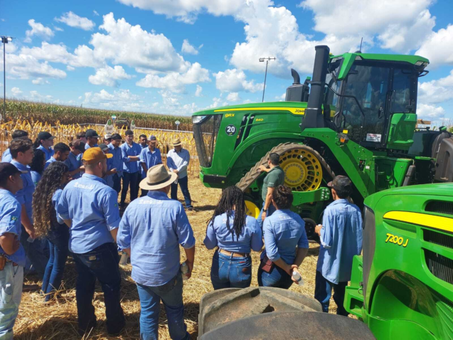 Durante a visita na propriedade, os alunos do 2º ano, acompanhados pelo professor Sérgio Ricardo dos Santos, da disciplina de Agricultura 02, foram apresentados à tecnologia embarcada nos Híbridos de Milho Forseed, Nutrição Mineral de Plantas e Fisiologia Vegetal.