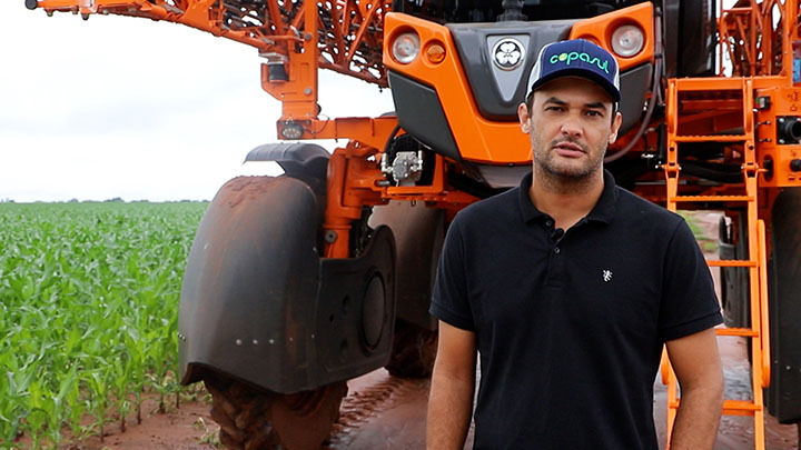 Aos 35 anos, Cláudio Guimarães tem uma grande missão nas mãos: cuidar da produção de grãos na fazenda Nova Orlândia, em Nova Andradina. Mesmo com o susto das chuvas durante a colheita, o gerente da propriedade está satisfeito com o resultado. “Conseguimos colher entre 82 e 83 sacas por hectare. E o bom da chuva é que ajudou na plantação do milho safrinha, o milho está verdinho, bonito... agora é cuidar.”, conta Cláudio.