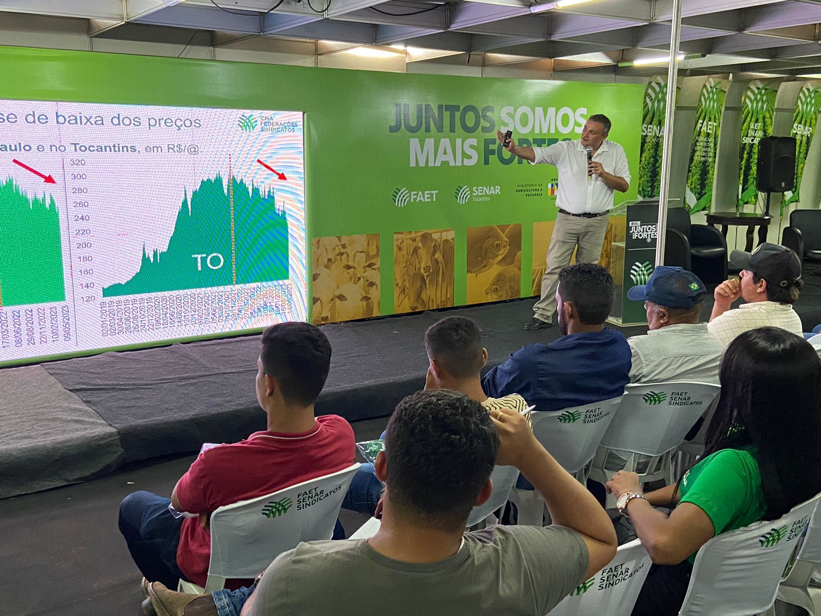 O técnico abordou ainda o uso de tecnologia, sustentabilidade, custos de produção, rastreabilidade, exportação, entre outros temas relacionados à cadeia produtiva. A palestra foi realizada no estande da Federação da Agricultura e Pecuária do Estado do Tocantins (Faet) na feira.