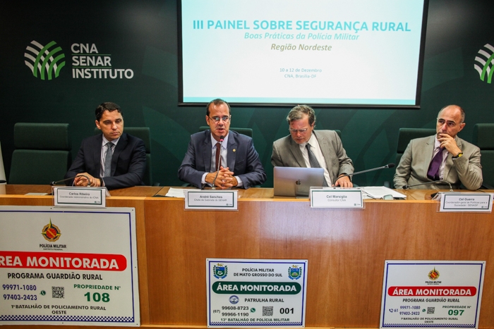 Brasília (10/12/2019) – A Confederação da Agricultura e Pecuária do Brasil (CNA) reúne, nesta semana, representantes das polícias militares do Nordeste no 3° Painel sobre Segurança Rural para debater estratégias para aumentar a eficiência do policiamento rural na região. O encontro começou na terça (10) e segue até quinta (12).