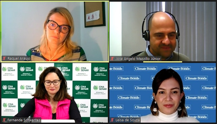 O evento virtual foi moderado pela head de Relações Institucionais e Governamentais do DBPA, Raquel Araújo, e contou com a participação do secretário adjunto de Política Agrícola do Ministério da Agricultura, Pecuária e Abastecimento, José Ângelo Mazzillo Junior, e da head para a América Latina da Climate Bonds Initiative (CBI), Leisa Souza.