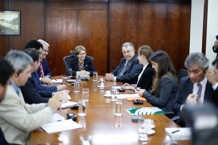 Brasília (28/03/2019) – O presidente da Confederação da Agricultura e Pecuária do Brasil (CNA), João Martins, se reuniu com a ministra da Agricultura, Tereza Cristina, e com a vice-CEO da Climate Bonds Initiative (CBI), Justine Leigh-Bell, na quarta (27), em Brasília, para discutir o potencial do mercado de títulos verdes para financiar o setor agropecuário brasileiro.