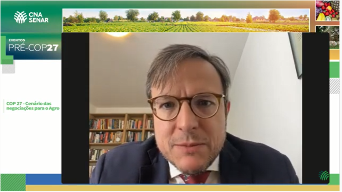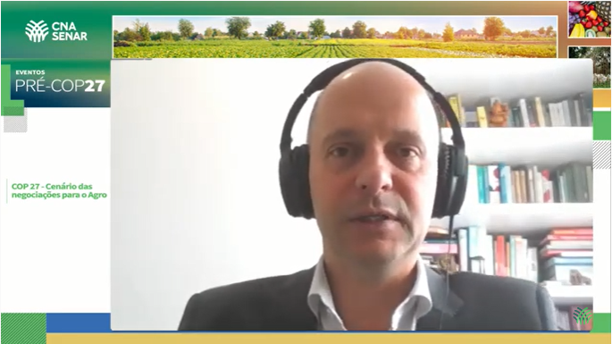 Programação - No primeiro painel do seminário pré-COP, o sócio-diretor da Agroícone, Rodrigo Lima, fez um panorama sobre o caminho traçado pelo Brasil até chegar à COP-27, contextualizou o cenário do Brasil no Acordo de Paris, e falou sobre como o setor agropecuário está inserido nas negociações.