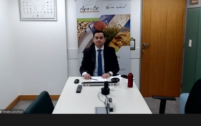 Brasília (08/04/2022) – O coordenador do Núcleo Econômico da CNA, Renato Conchon, apresentou as perspectivas econômicas para o agro em ano de eleições e guerra, durante evento promovido pela Sociedade Rural Brasileira (SRB), na sexta (8).