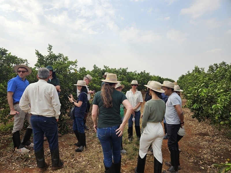 O evento contou também com visita a campo e às instalações de pesquisa da Fundecitrus para compartilhamento de conhecimentos sobre a identificação da doença, e orientações sobre o manejo do psilidio (Diaphorina citri), vetor da doença no Brasil.