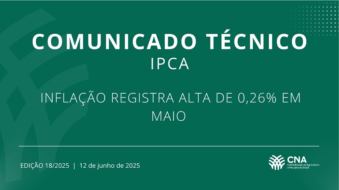Brasília (14/05/2025) – A Confederação da Agricultura e Pecuária do Brasil (CNA) divulgou um Comunicado Técnico com a análise do Índice de Preços ao Consumidor Amplo (IPCA) em abril.