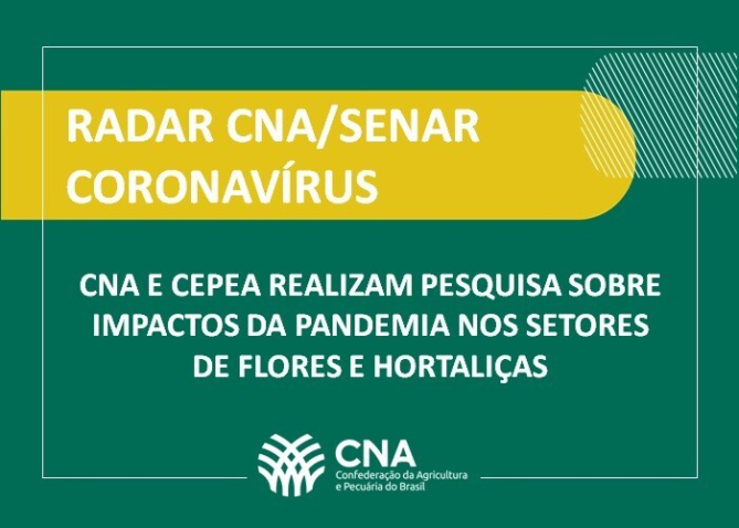 Brasília (24/06/2020) – A revista Hortifruti Brasil do Centro de Estudos Avançados em Economia Aplicada (Cepea), em parceria com a Confederação da Agricultura e Pecuária do Brasil (CNA), realiza uma pesquisa para saber quais são os impactos da pandemia do coronavírus (Covid-19) nas cadeias produtivas de frutas e hortaliças.