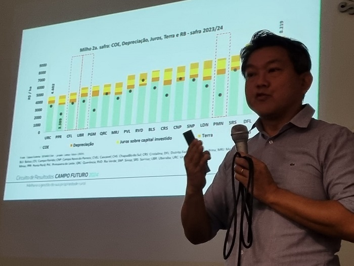 “O produtor teve um cenário desfavorável na safra 2023/2024, com alta dos insumos e queda nos preços. Vemos um horizonte desafiador com problemas climáticos no mundo e as queimadas acontecendo no país, aumentando as dificuldades em cobrir os desembolsos efetivos e receita abaixo dos custos totais. Por isso é muito importante o produtor ver onde está impactando e o Campo Futuro tem essa função de dar um direcionamento”, afirmou.