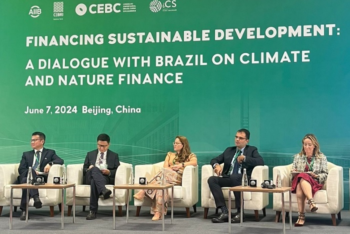 A última agenda da missão foi o seminário “Diálogo Brasil-China sobre Financiamento Climático e Natural”, realizado no Banco Asiático de Investimento em Infraestrutura (AIIB). Sueme participou como palestrante do segundo painel que debateu a importância do financiamento para escalar soluções de agricultura e pecuária de baixo carbono.