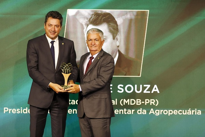O presidente da Frente Parlamentar da Agropecuária (FPA), Sérgio Souza (MDB/PR), foi o premiado na categoria de Política, pela sua "atuação no Legislativo em defesa dos interesses do setor". Ao receber o prêmio do 1º vice-presidente de Secretaria da CNA, Mário Borba, ele destacou o trabalho em parceria entre FPA e CNA e falou de alguns desafios que virão pela frente, como a redução dos custos de produção.