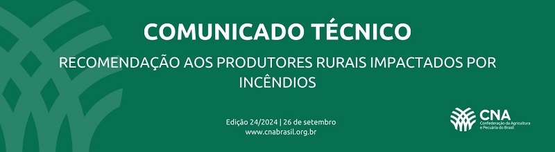 Diante dos prejuízos, e preocupada com a orientação aos produtores rurais, a Confederação elaborou um comunicado técnico, com orientações antes, durante e após os incêndios.