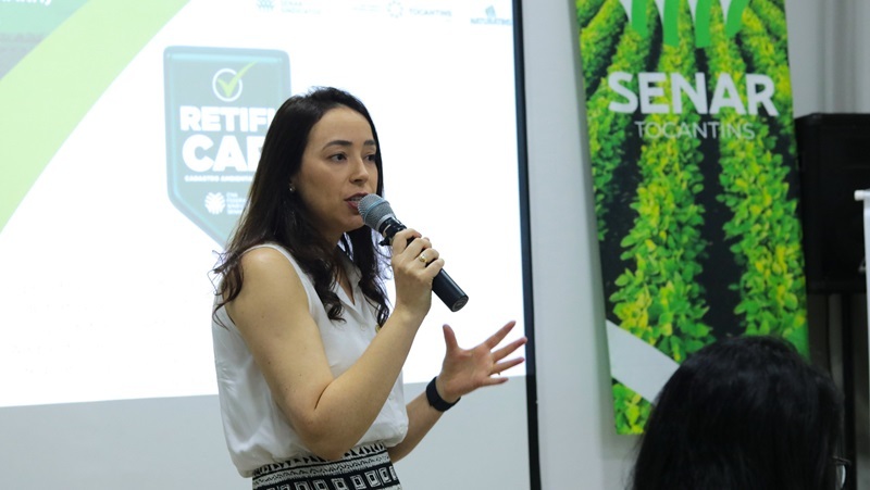 A assessora técnica da CNA Jaine Cubas fez uma apresentação do projeto e destacou que a proposta do RetifiCAR é apoiar os produtores rurais, de maneira prática, no processo de retificação para regularizarem seus cadastros.
