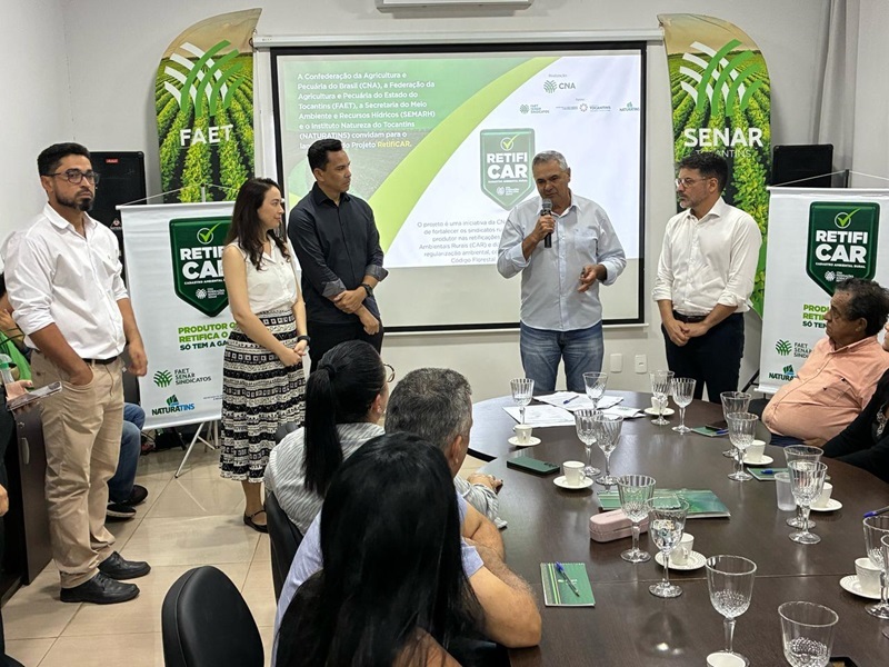 A promoção do RetifiCAR no estado é uma parceria com a Federação da Agricultura e Pecuária do Estado do Tocantins (Faet), Secretaria do Meio Ambiente e Recursos Hídricos (Semarh) e o Instituto Natureza do Tocantins (Naturatins). A cerimônia de lançamento foi realizada na sede da Faet, em Palmas.