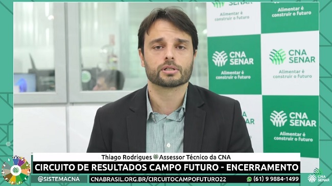 Durante a live, o assessor técnico da CNA, Thiago Rodrigues, apresentou os resultados do projeto, com destaque para os itens de maior participação nos custos agrícola e pecuário. No caso das atividades agrícolas, os gastos com fertilizantes, defensivos agrícolas e diesel pesaram no bolso do produtor em 2022.