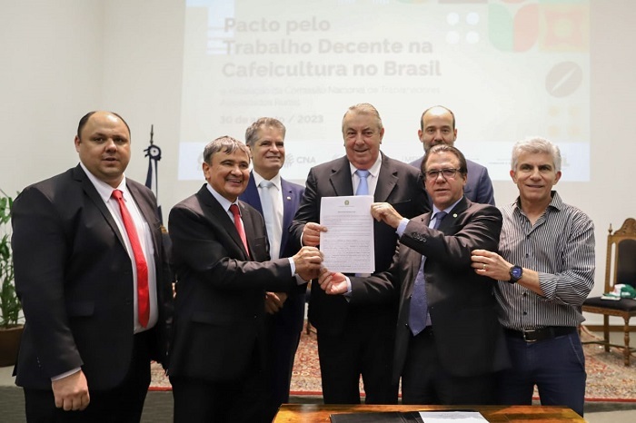 Brasília (31/08/2023) – A Confederação da Agricultura e Pecuária do Brasil (CNA) participou, na quarta (30), da assinatura de um pacto que reforça o compromisso e a cooperação entre instituições públicas e privadas para viabilizar ações que aperfeiçoem, cada vez mais, as condições de trabalho na cafeicultura brasileira.
