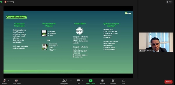 Na rodada de reuniões, que se iniciou pela região Sul, o coordenador administrativo do Instituto CNA, Carlos Frederico Ribeiro, apresentou o Sistema de Registro de Máquinas Agrícolas (ID Agro Máquinas), desenvolvido pelo ICNA em parceria com o Ministério da Agricultura, Pecuária e Abastecimento (Mapa).