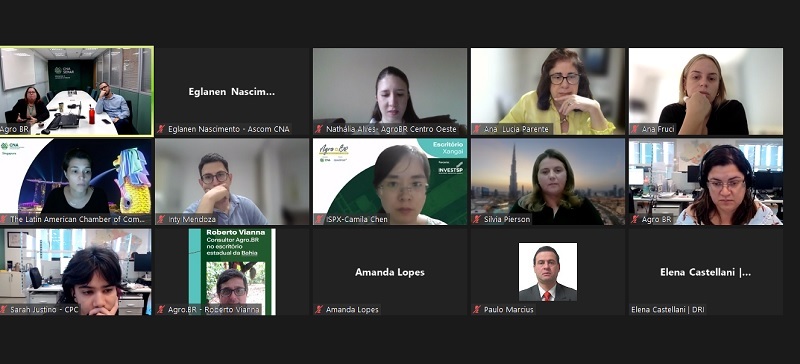 Brasília (20/07/2023) – A CNA iniciou, na quarta (19), uma série de seminários com os consultores regionais do projeto Agr.BR e os escritórios internacionais da entidade, localizados na China (Xangai), Cingapura e Emirados Árabes Unidos (Dubai).