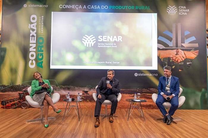 O painel “Conexão Agro – Conhecendo a Casa do Produtor Rural” discutiu os projetos e programas em andamento e os benefícios para os produtores. O debate contou com a presença de Matheus Ferreira, diretor-executivo adjunto do Instituto CNA, e Valmor Falkemberg Boelhouwer Júnior, assessor do Senar.