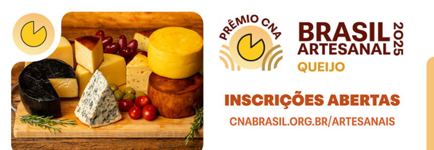 As inscrições para o Prêmio CNA Brasil Artesanal 2025 Queijos estão abertas até 6 de maio, e o regulamento pode ser consultado no site do Sistema CNA/Senar. A edição deste ano contempla três categorias: tradicional (com maturação de 30 a 180 dias), tratamento térmico e queijos com adição de aromatizantes e condimentos.