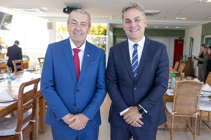 Brasília (17/04/2023) - O vice-presidente da CNA, José Mário Schreiner, se reuniu, na quarta (17), em Brasília (DF), com o presidente global da Bayer Crop Science, Rodrigo Santos, para discutir uma série de assuntos relacionados ao agro.