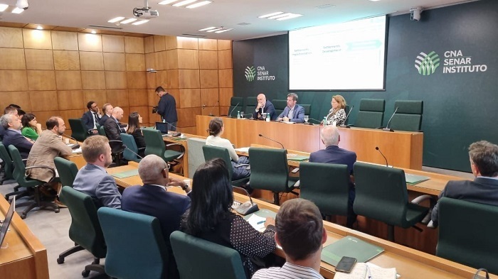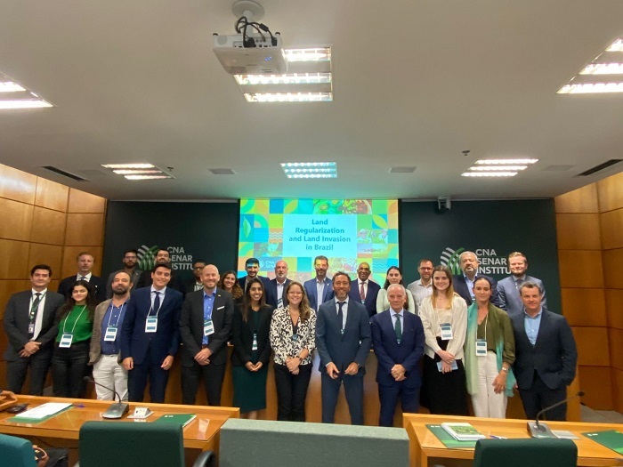 Um dos temas abordados foi a regularização fundiária. O diretor técnico, Bruno Lucchi, falou sobre a importância do tema para o setor e esclareceu dúvidas dos diplomatas sobre a política de reforma agrária e a questão do marco temporal na demarcação de terras indígenas.