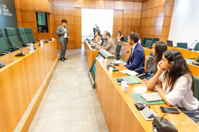 O diplomata da Embaixada da Argentina, Cristián Rondán, e o representante da Embaixada da União Europeia, Vicent Damian Lluna Taberner, ressaltaram a relevância do encontro realizado pela CNA. Eles compõem a equipe da coordenação do Grupo DAB.