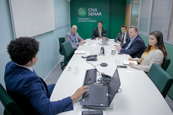 Também participaram do encontro o coordenador de Produção Animal da CNA, João Paulo Franco, a coordenadora de Produção Agrícola, Júlia Almeida, o assessor de Relações Internacionais Matheus Andrade, e o conselheiro para Alimentação e Agricultura da Embaixada da Alemanha, Roland Mohr.