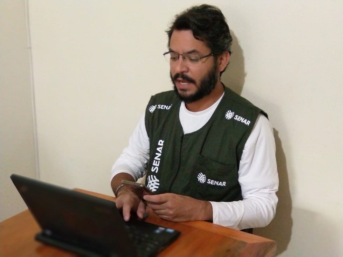Durante a pandemia, o técnico de campo Thiago Campos realiza o acompanhamento técnico remoto