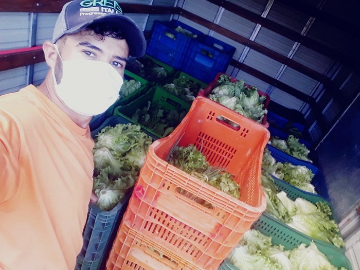 Os colaboradores do produtor Márcio fazem a entrega nos sacolões de Alexânia