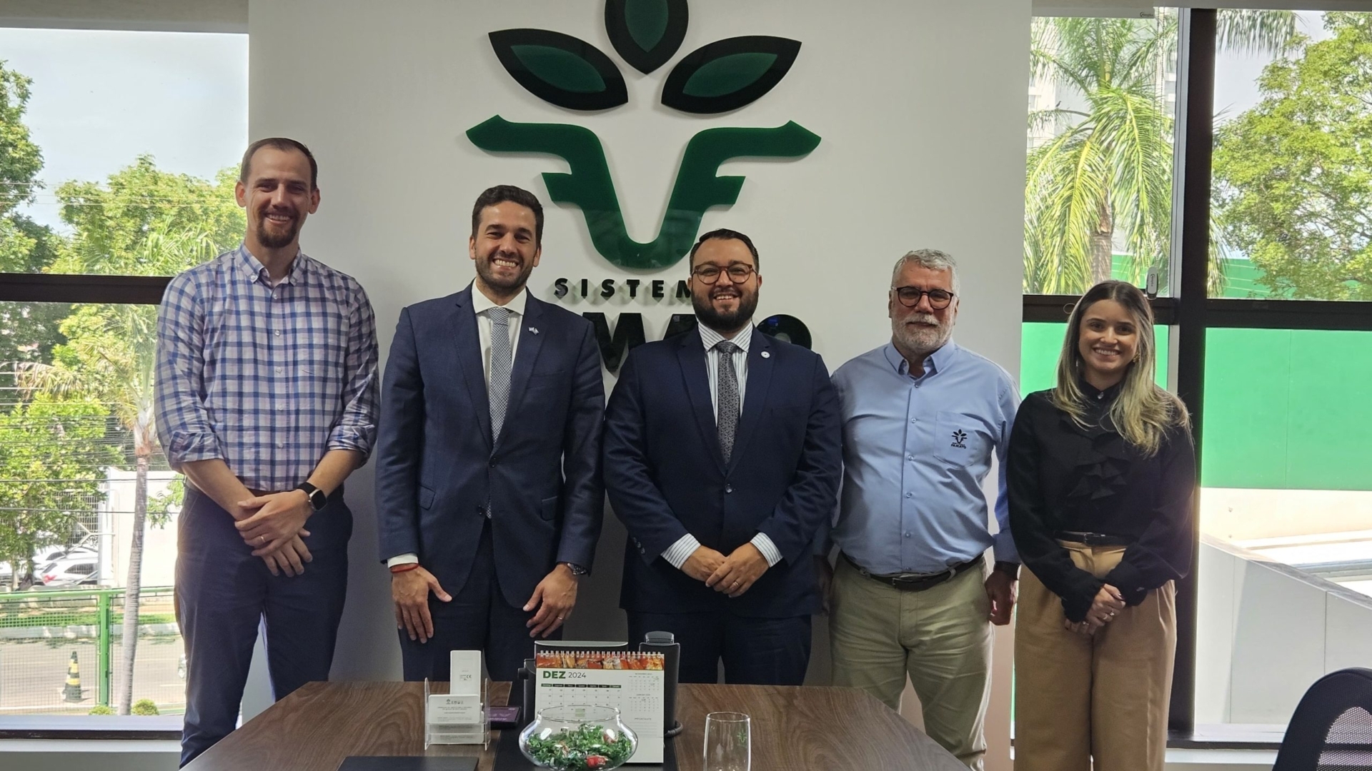 Nesta quinta-feira (28/11), a Federação da Agricultura e Pecuária de Mato Grosso (Famato) recebeu a visita de uma comitiva cearense liderada pelo presidente da Federação da Agricultura e Pecuária do Ceará (Faec), Amilcar Silveira. O grupo, formado por pecuaristas, presidentes de sindicatos rurais e lideranças do agronegócio cearense, foi recepcionado pelo presidente da Famato, Vilmondes Tomain, e pelo superintendente do Serviço Nacional de Aprendizagem Rural (Senar-MT), Marcelo Lupatini.