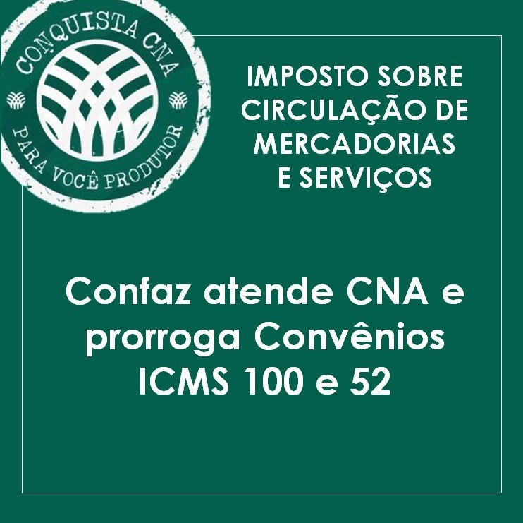Medida atende a um pedido da CNA, que defendeu a renovação dos Convênios 100/97 e 52/91 para manter competitividade do setor