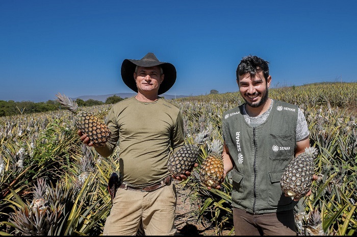 De acordo com Antônio, a Assistência Técnica do Senar Goiás é essencial, desde o início com a escolha das mudas, ao preparo do solo. “O técnico repassa para gente de uma forma clara tudo bem detalhado. Era bem o que eu precisava e antes tentava fazer sozinho. E claro, não podemos esquecer das orientações de custo. O Senar Goiás me ajuda muito com o gerenciamento da lavoura. Assim, eu consegui fazer um lucro bem maior. É importante destacar ainda que com índice de doença menor e com a qualidade de mudas bem melhor, consigo aumentar cada vez mais o potencial das plantas”, descreve o produtor de abacaxi.