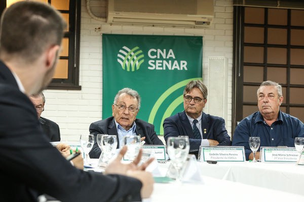 Além do presidente da CNA, João Martins, e da Farsul, Gedeão Pereira, participaram do encontro o 1° vice-presidente, Roberto Simões (MG), o 2° vice-presidente, José Mário Schreiner (GO), 1º vice-presidente de Finanças, José Zeferino Pedrozo (SC), o 2º vice-presidente de Finanças, Muni Lourenço Silva Júnior (AM), o 1º vice-presidente de Secretaria, Mário Antônio Pereira Borba (PB), e o 2º vice-presidente de Secretaria, Júlio da Silva Rocha Júnior (ES).