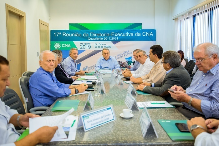 Brasília e Rio Branco (01/08/2019) – A Diretoria Executiva da Confederação da Agricultura e Pecuária do Brasil (CNA) se reuniu na quinta (1), na sede da Federação da Agricultura e Pecuária do Estado do Acre (Faeac), em Rio Branco.