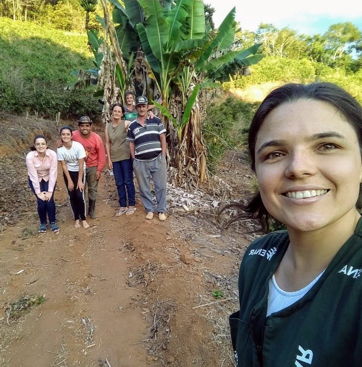 “A cada dia mais me apaixono pela profissão que escolhi e pela assistência técnica, pois fazemos grandes amizades. Ver no rosto do produtor a gratidão pelo trabalho desenvolvido e os resultados obtidos não tem preço. Eu tenho apenas um sentimento: gratidão por cada família que abriu as portas de suas casas e me acolheu como se eu fosse uma filha chegando. Ao longo do projeto fui me apegando aos produtores e especialmente às esposas, que me recebiam com tanto carinho, sempre me esperando com um café e uma quitanda gostosa. Levarei essa amizade para o resto da vida, pois são pessoas que se tornaram minha família e propriedades que viraram minha casa. Quando finalizamos o trabalho, mesmo com tantas dificuldades por causa da Covid, os produtores que eu assisto fizeram uma ‘festa de despedida’ e ali eu percebi que eu faço a diferença para eles. Recebi tanto carinho que nem tenho palavras para agradecer a cada um. É com gestos simples assim que vamos nos apaixonando pela cafeicultura e pelos produtores rurais, que acordam cedo e vão para o campo, faça sol ou faça chuva, para colocar na nossa mesa um café cultivado com tanto amor e dedicação.”
