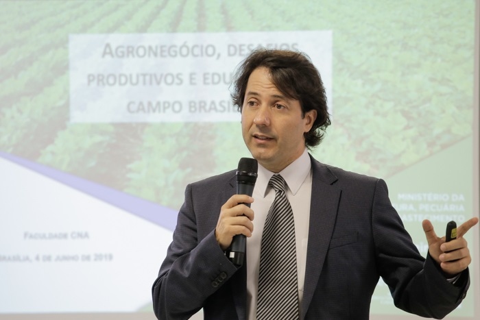 O diretor de programas da Secretaria Executiva do Ministério da Agricultura, Pecuária e Abastecimento (Mapa), José Eustáquio Ribeiro Vieira Filho, fez a palestra magna do encontro e falou sobre os desafios produtivos do agronegócio e a educação no campo.